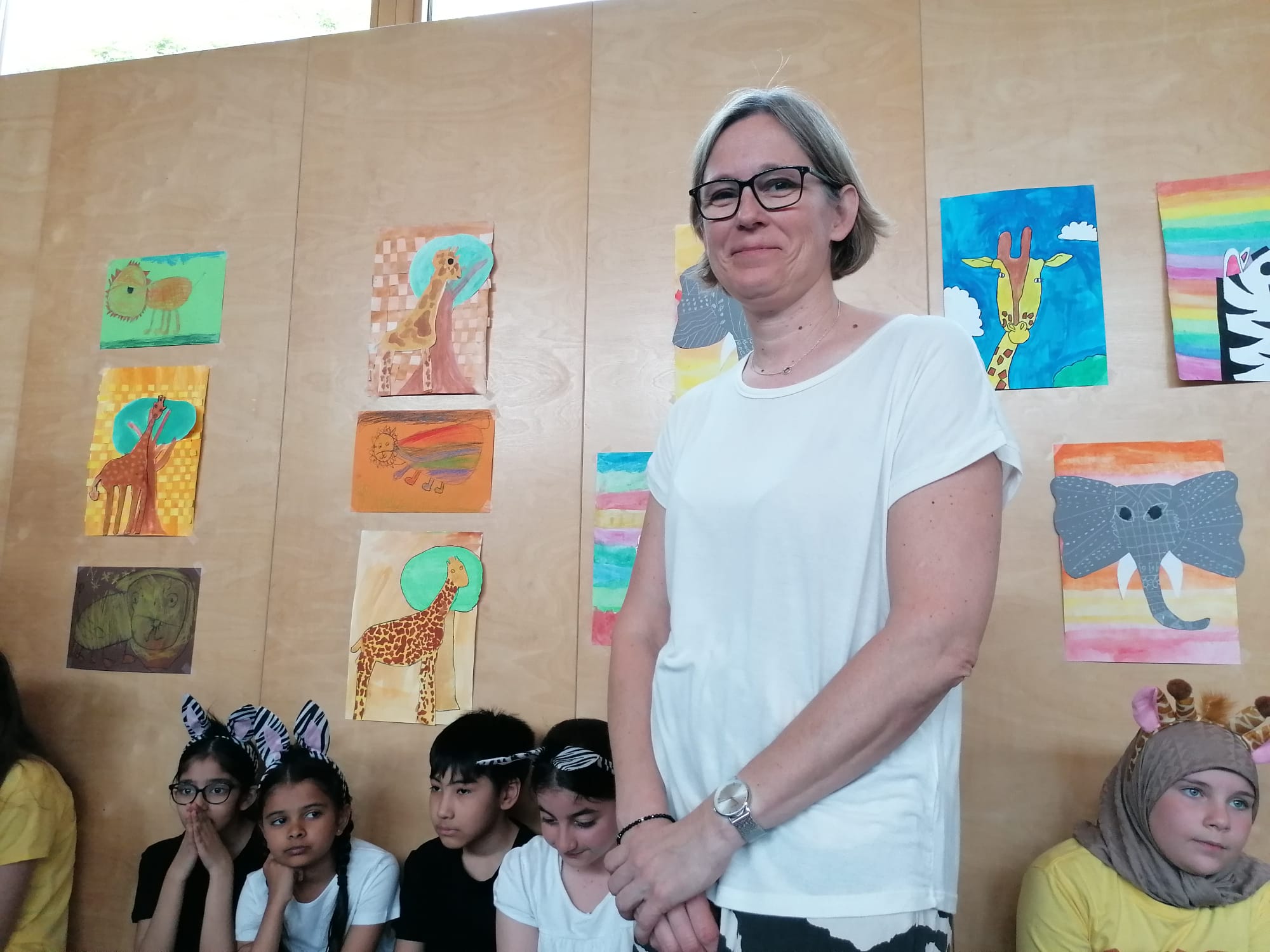 Die Klasse 4b bei der Eröffnung der Ausstellung "Schere, Stein, Papier im Kinder Kunst Labor
