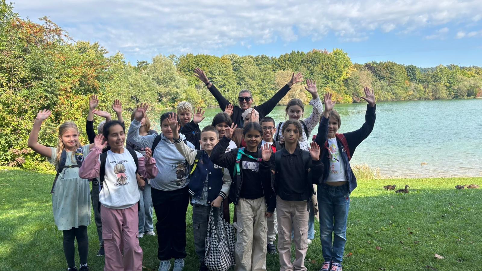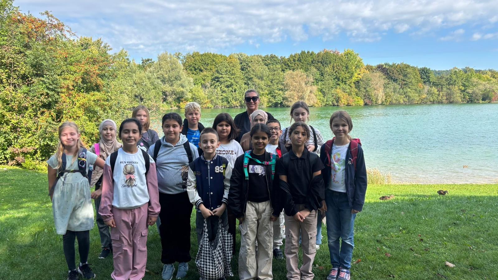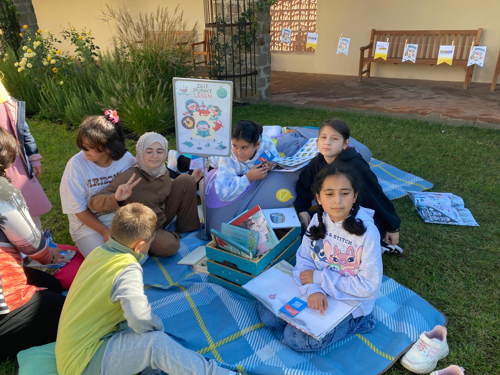 • Die Klassen 4a und 4b beim Lesepicknick im Alluminatsgarten